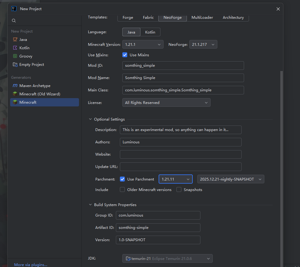 (本文基于neoforge模组加载器,游戏版本为1.21.1,neoforge版本为21.1.217,JDK版本为21)