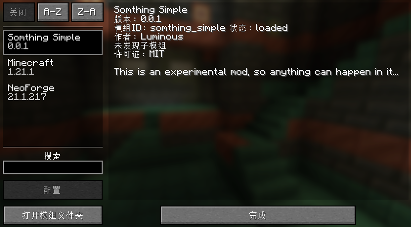 等待一段时间直至游戏加载完成,在主界面中打开模组,你就会发现你的mod已经成功在游戏中加载了