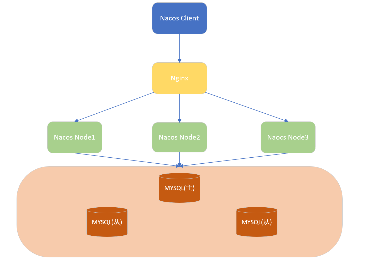有时,nacos服务端也会被放到一个集群中进行统一管理来实现nacos的高可用